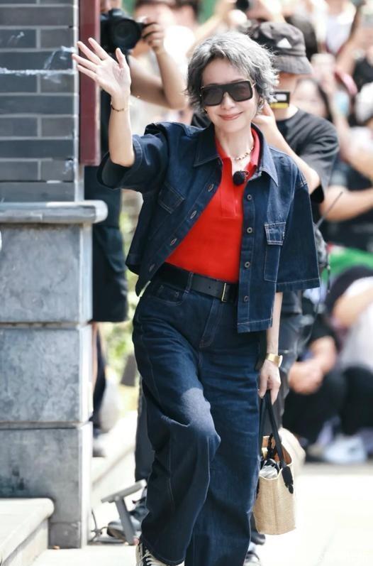 短袖外套是一个很吸睛的单品,深蓝色牛仔面料带来一点厚度,哪怕是夏天穿也可能有点热,毕竟各位时髦精夏日穿的T恤面料都十分轻薄。内搭是亮红色,此色实在是太抢眼了,这种浓烈的颜色恰好打破了牛仔带来的沉闷。腰带的存在挺有必要,它可以收紧腰线,还不影响整体穿搭的时尚感。